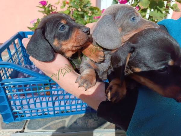 Eladó a képeken látható 3 db fiú tacskó kölyök. Szeptember 11-én születtek. Féregtelenítve oltásokkal kerülnek az új gazdikhoz.
